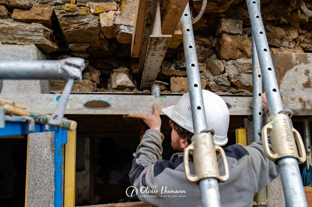 Percements et créations d’ouvertures toutes tailles – Maçonnerie pierres de taille ou moellons tout venant pour la construction de jambages, de seuils, d’appuis, de linteaux… (mise en sécurité, échafaudages, étaiements).